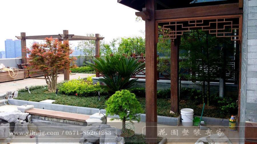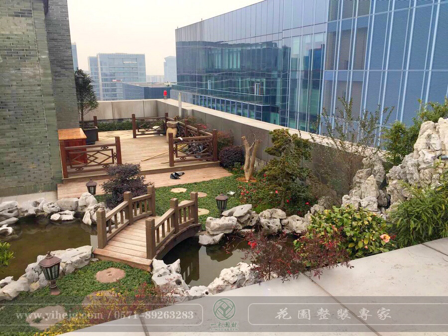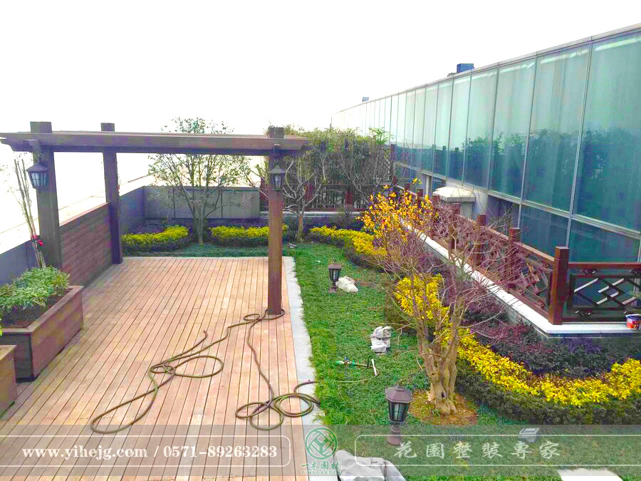 藍色錢江私家屋頂花園景觀|私家露臺花園改造|私人屋頂花園景觀綠化施工